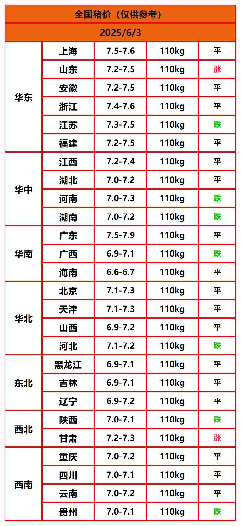 2025年6月3日猪价,今日全国猪价行情走势:2涨17平7跌。