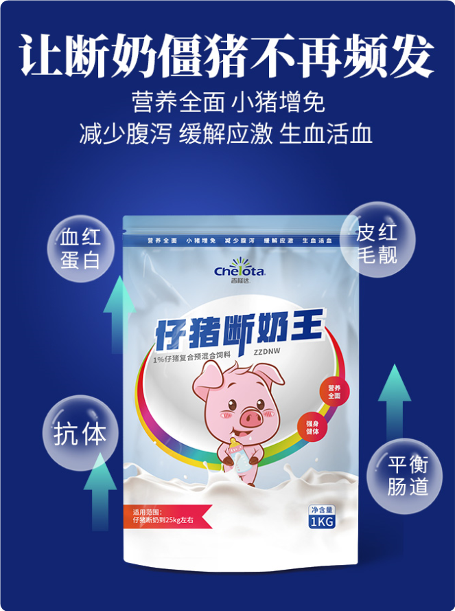 仔猪断奶王 能够改善血液质量,改善机体造血机能,改善动物肠道健康,提高仔猪、生长猪的日增重及饲料转化率,并靓化皮毛。